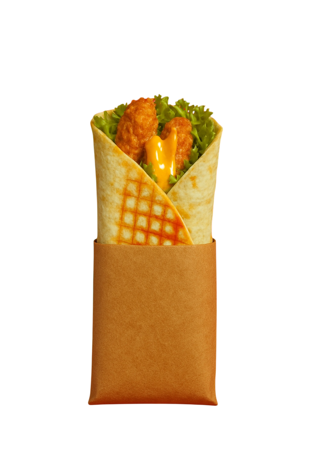 Сочный гирос в лепешке с куриными стрипсами, хрустящим фри, свежими овощами и фирменным соусом — идеальный перекус!
