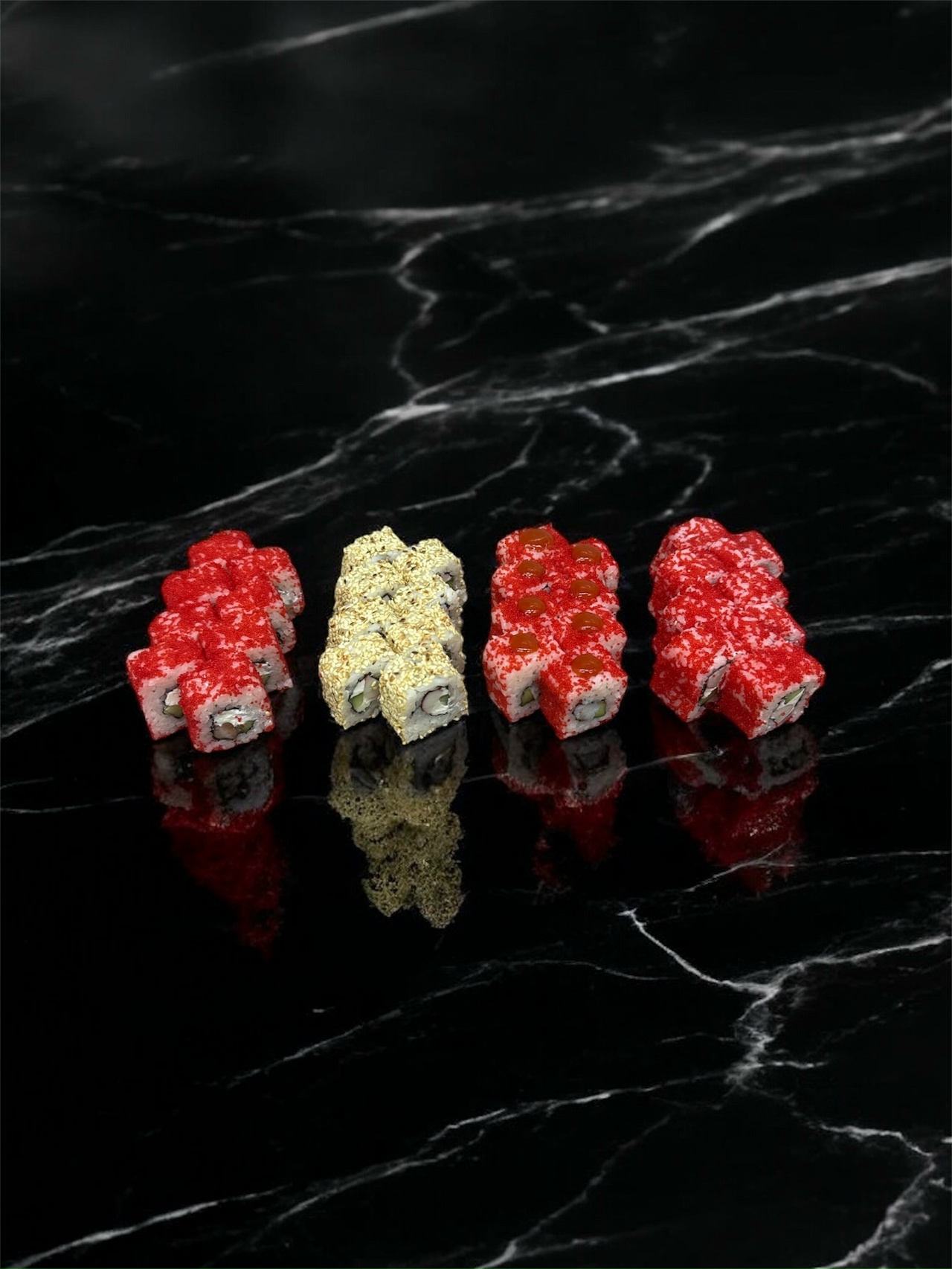 Темпура Калифорния, Темпура Филадельфия, Запечённый с мидиями, Запечённый с курицей.