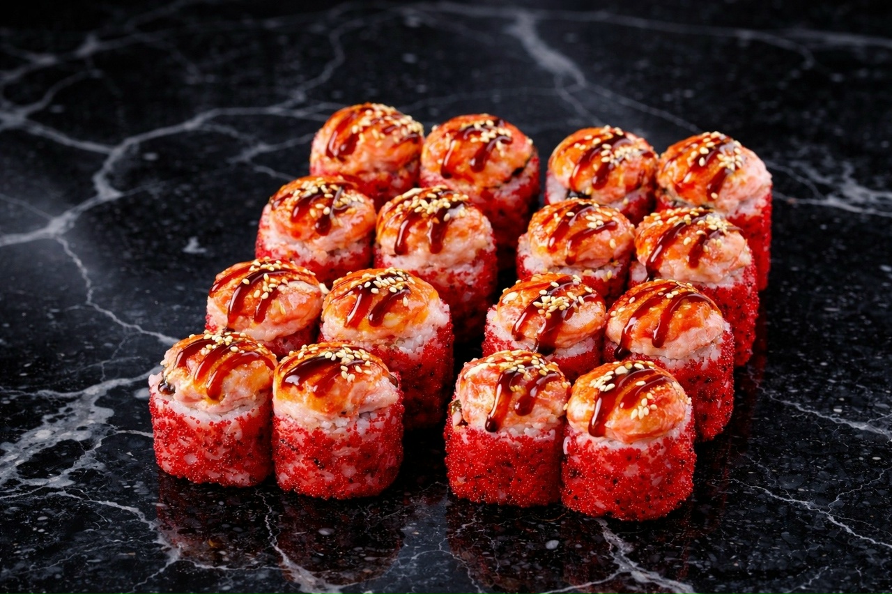 Темпура Калифорния, Темпура Филадельфия, Запечённый с мидиями, Запечённый с курицей.