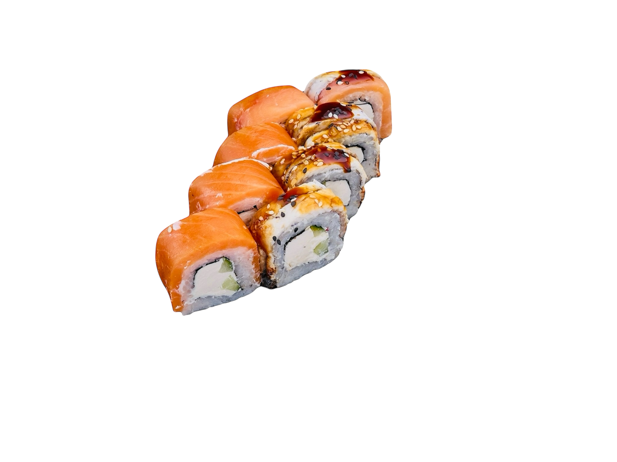 Сыр сливочный, огурец, нори, лосось , угорь.