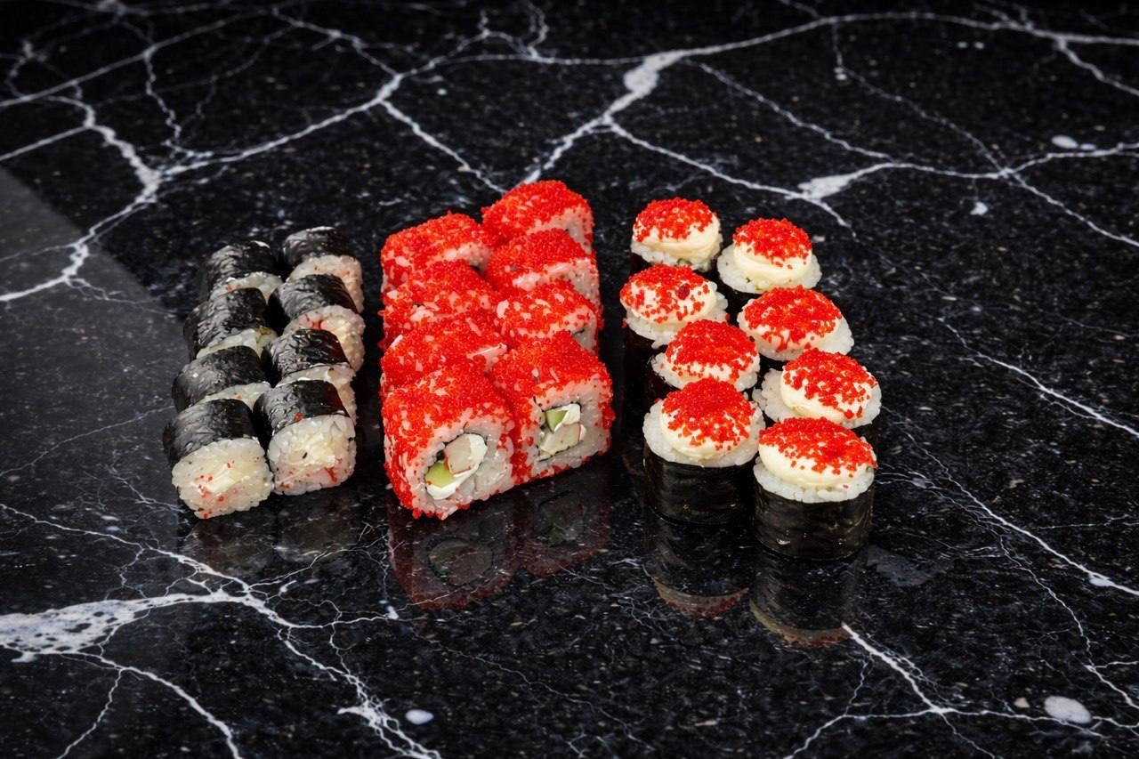 Ролл крабс, Ролл Дуэт, Темпура Бекон, Запеченный Чеддер, Запеченный Цезарь