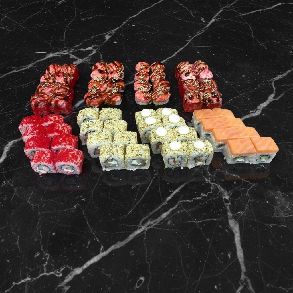 Темпура Калифорния, Темпура Филадельфия, Запечённый с мидиями, Запечённый с курицей.